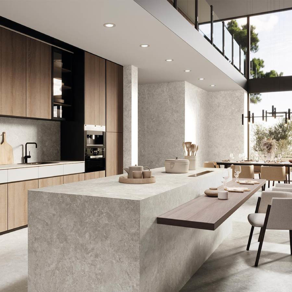 The Tundra collection is inspired by a natural stone known for its unique nature and splendour. This stone with its predominantly earth-colored background, with its two shades of Beige and Greige, is decorated with veins that vary from white tones to browns, invoking the natural landscapes reminiscent of the vast Arctic tundra.