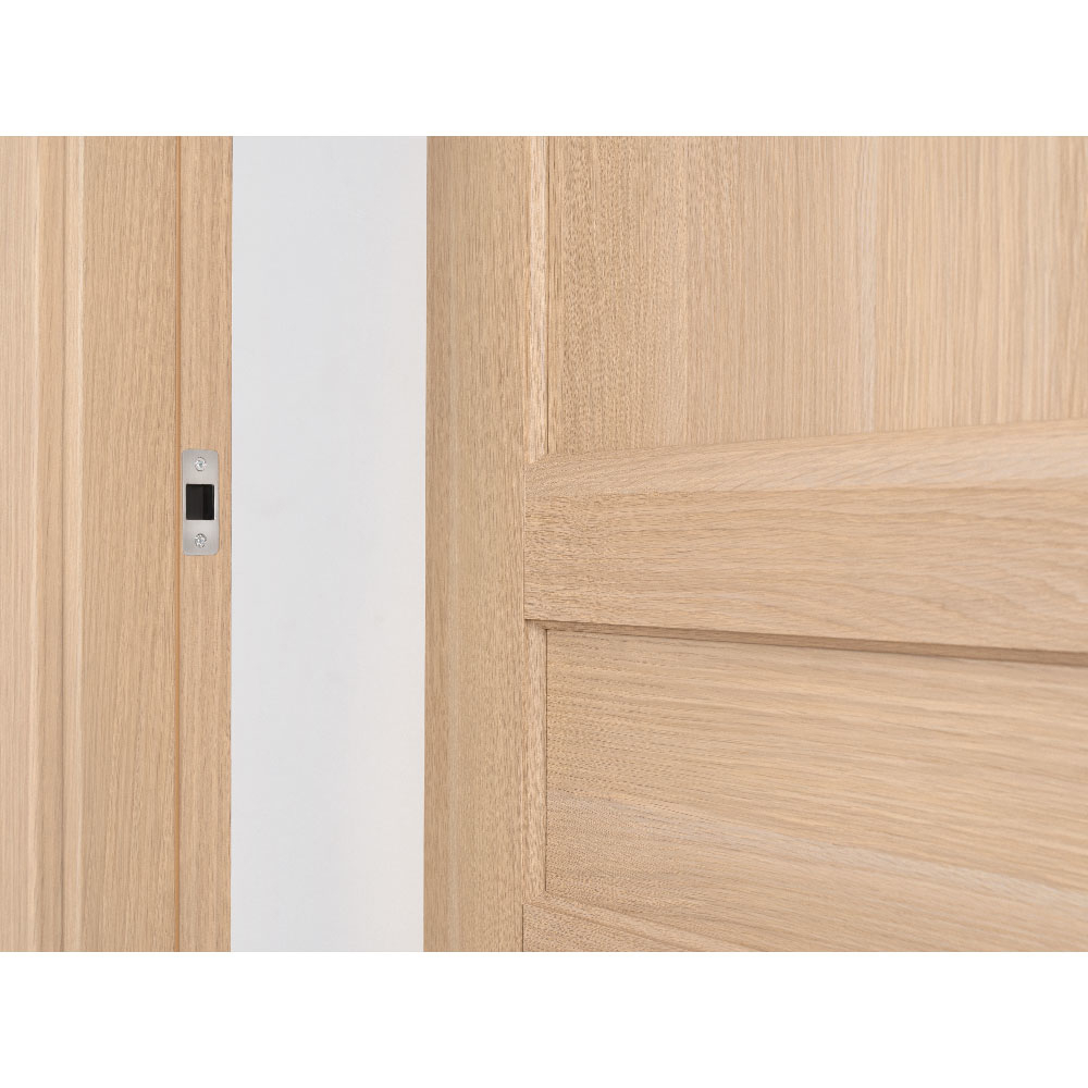 The door is professionally drilled and prepared for the Italian MANIGLI Click Magnetic Tubular Latch, ensuring quiet closing, precise alignment, and reliable everyday performance.
