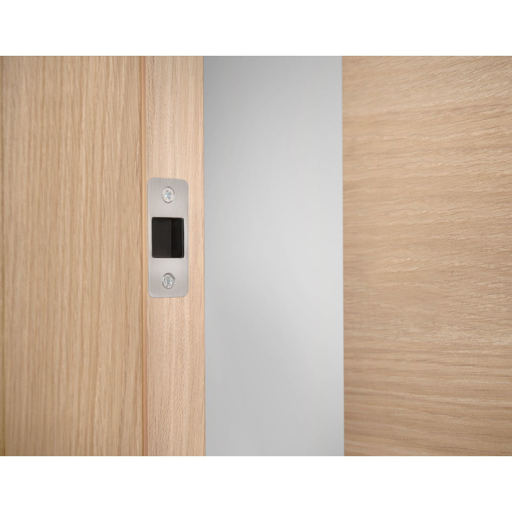 The door is professionally drilled and prepared for the Italian MANIGLI Click Magnetic Tubular Latch, ensuring smooth, quiet operation and precise door closing.