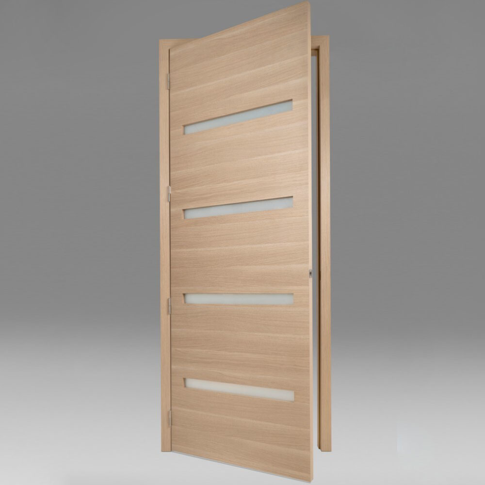 The Vetro White Oak interior door features elegant opaque glass inserts that enhance both style and functionality. The glass panels introduce a refined architectural detail while allowing soft natural light to pass between rooms, making the door ideal for modern homes, apartments, and interior design projects.