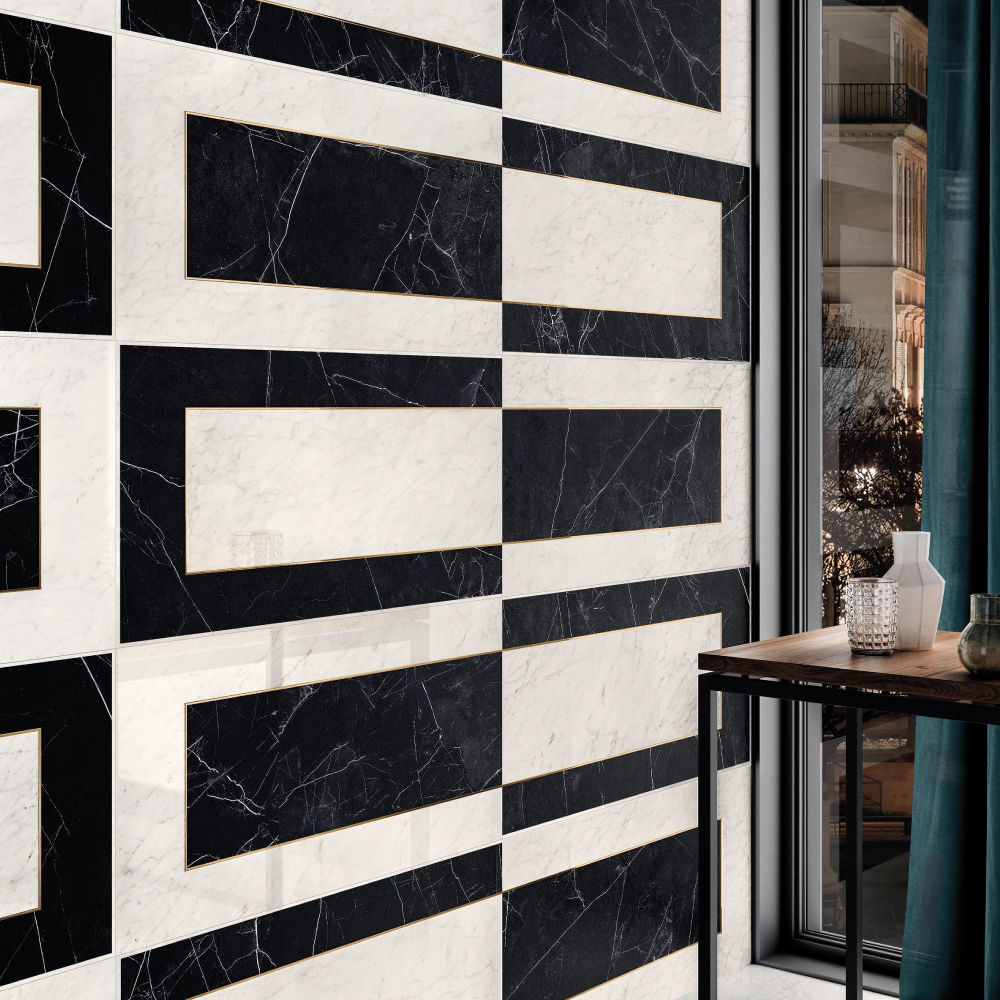 The new marble effect surfaces show off their wilder side, thanks to a stylish mixture of textures, decorations, and shades that develop all the positive elements of tradition to create an exclusive, contemporary look.
