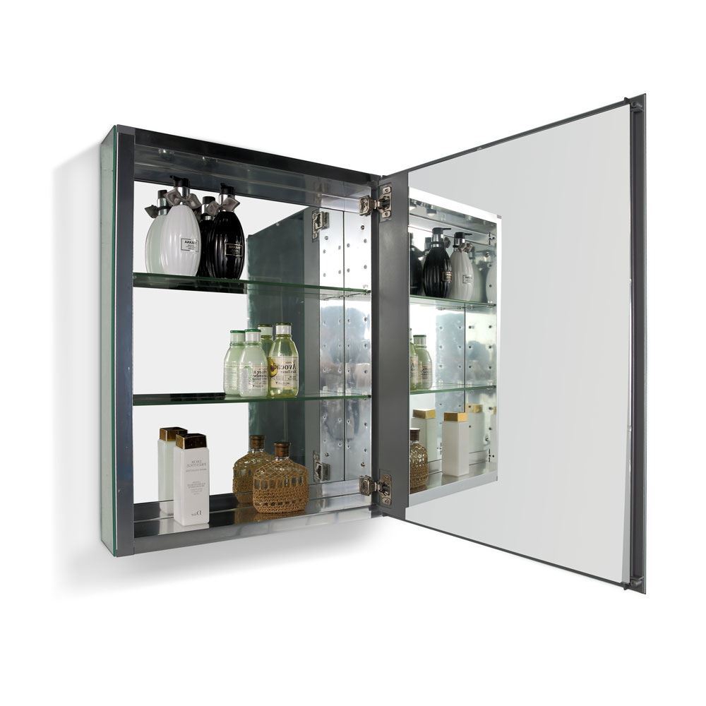 This elegant and beautifully designed Venice Gray bathroom cabinet mirror is ideal for keeping your bathroom essentials and gives you a better experience for your make-up applying or shaving. Aluminum mirror cabinet, with built-in LED Lights and double mirror swing door, features large storage space and is suitable for hanging over any bathroom vanity.