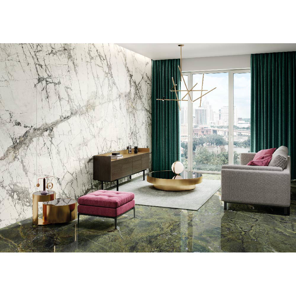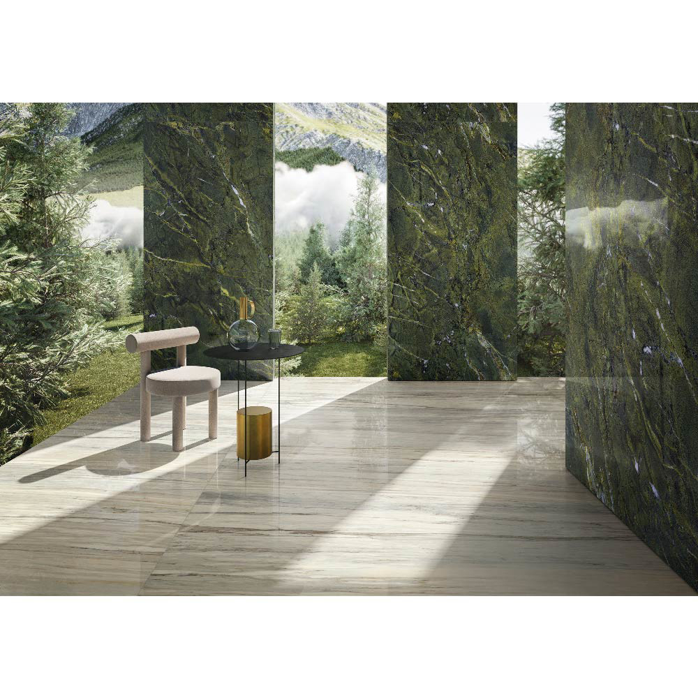With its deep green tones and elegant veining, Verde Persia brings timeless sophistication and a luxurious character to floors, walls, and feature surfaces. Available in large-format slabs, it combines bold design with durability and high-performance functionality, ideal for both residential and commercial spaces.