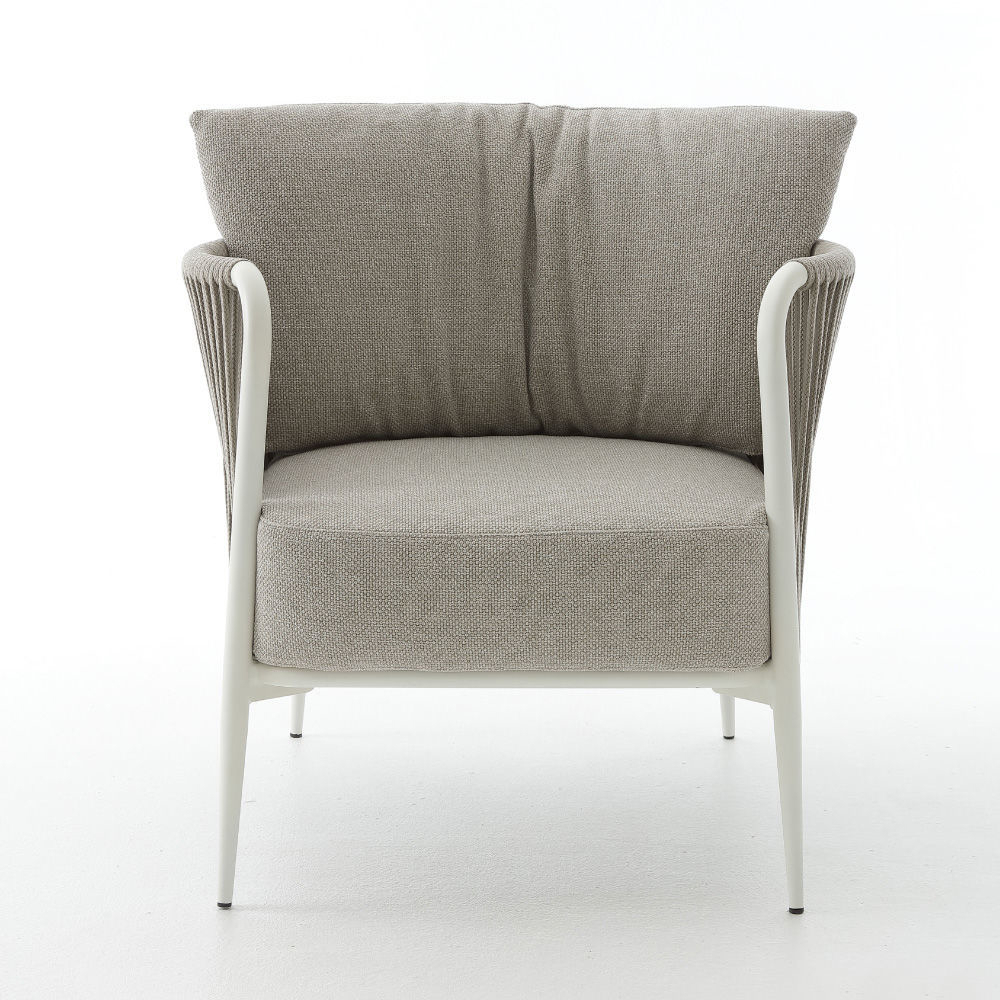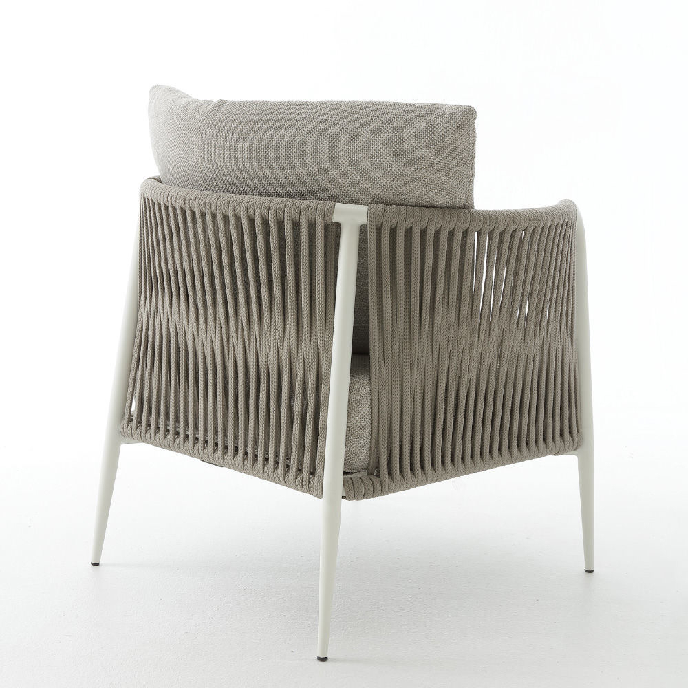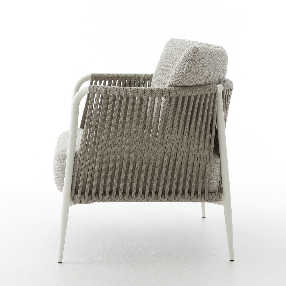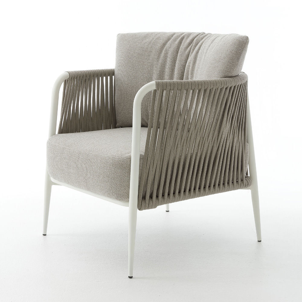 The unique, airy design of the chair, armchair and sofa of Versilia collection is perfect for exquisite moments of relax. The wrap-around back and armrests, made entirely out of rope, blend seamlessly and give each piece a contemporary yet timeless look and feel. The backrest cushions are designed for optimal seating comfort.