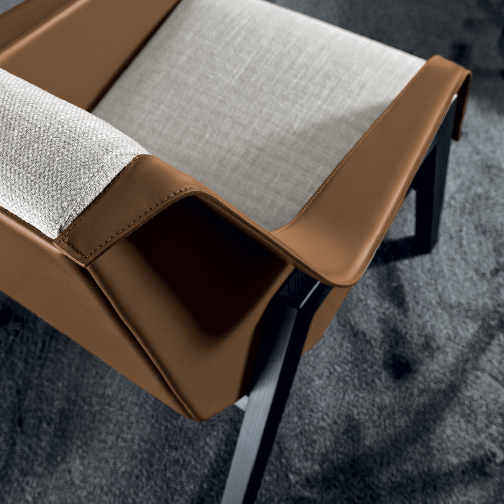 Three times beautiful and vintage. A charming design, where the play of materials not only uses exceptional protagonists, but becomes the strong point of Via Condotti. Saddle, fabric and wood make this essential masterpiece of rationality that, elegant as the street it takes its name from, perfectly adapts to the most modern settings.