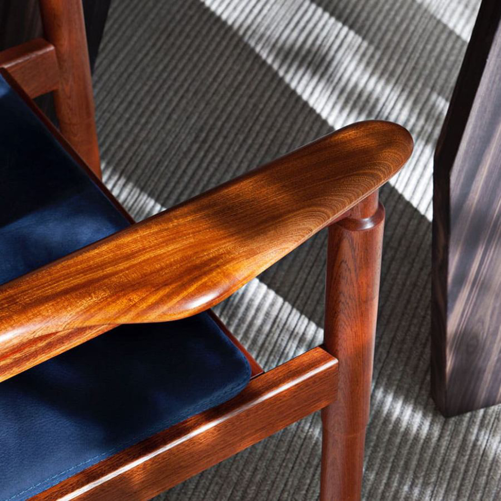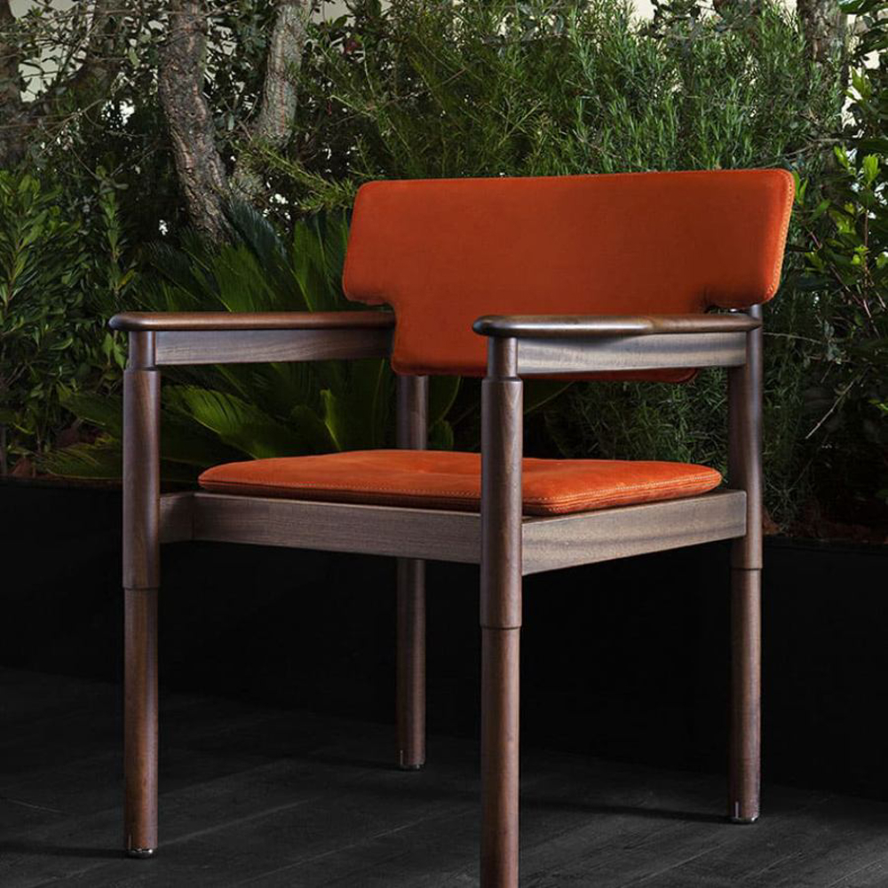 Recalling the nautical most refined style, the edges of the armrests and the structure are delicately rounded and smoothed. The armrests draw inspiration from the design of nautical oars, making the ergonomic comfort lead the seating experience.