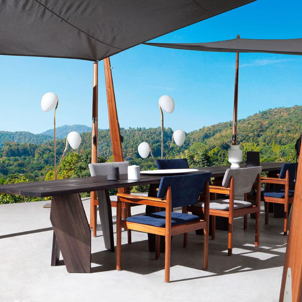 A reinterpretation of a great classic with a nostalgic taste, inspired by Italian summers: the director's chair in an outdoor key. From the great cabinet-making tradition of Exteta, a precious collection is born, timeless but with modern details.