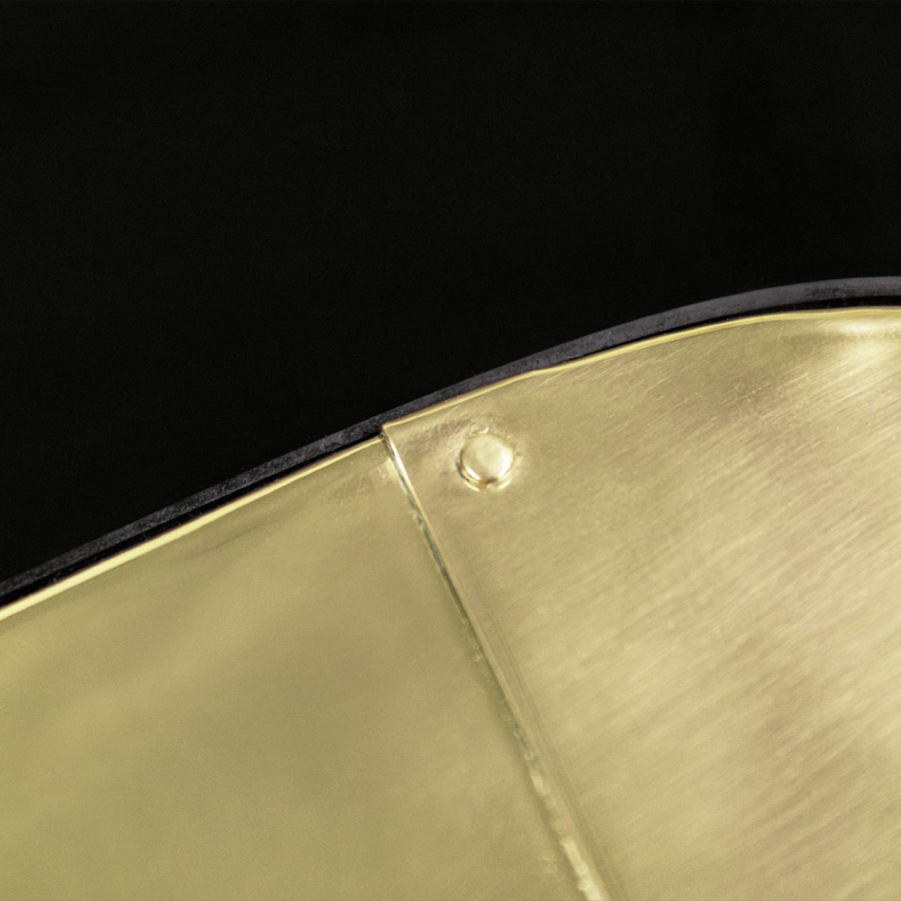 Polished brass, Glass, Wood.