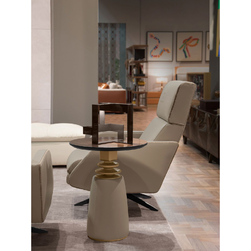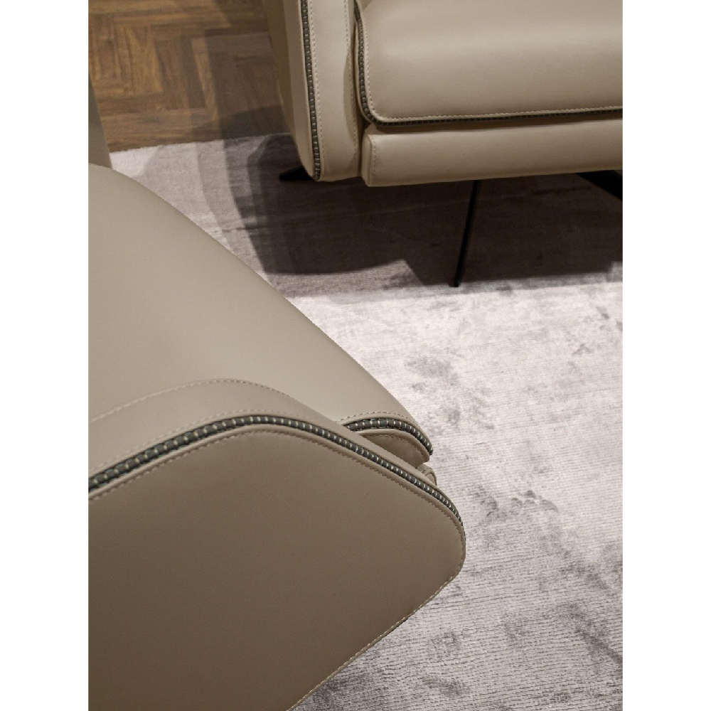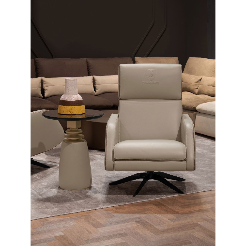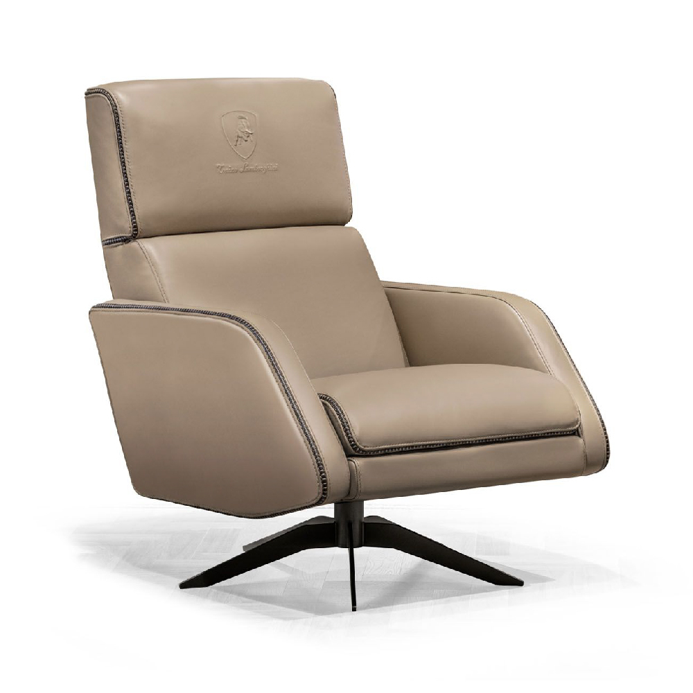 All in leather Daino col. Mud with piping in fabric Formitech col. 42 & stitching in contrast, TL logo printed on headrest, metal swivel base in Titanium glossy finish.